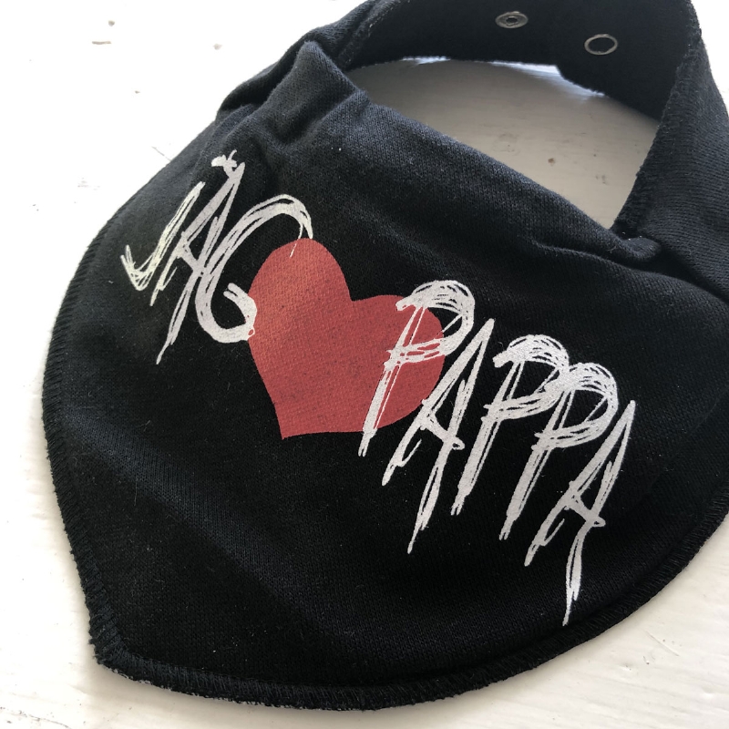 Dregglisar Pippi med text: Jag älskar pappa. Svart Med skyddande membran mellan tyget för att undvika att vätan tränger igenom.