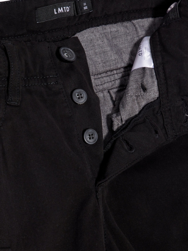 Vävda cargoshorts i bomull Justerbar midja Fickor med tryckknappsstängning Knappar vid gylf |